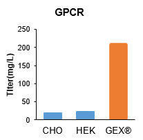 例如,在表达G 蛋白偶联受体 GPCR 的胞外结构域时,GEX® 细胞系的表达量相比传统的 CHO-K1 细胞系可提升10倍之多。