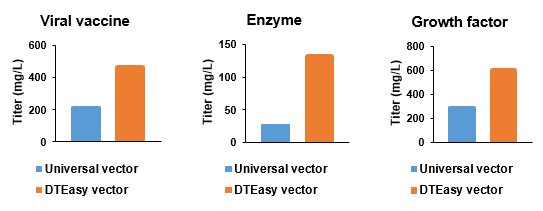 表达载体的设计会直接影响蛋白合成效率。汉腾生物的DTEasy工具箱通过优化一系列措施改造表达载体系统,提升难表达蛋白的产量: