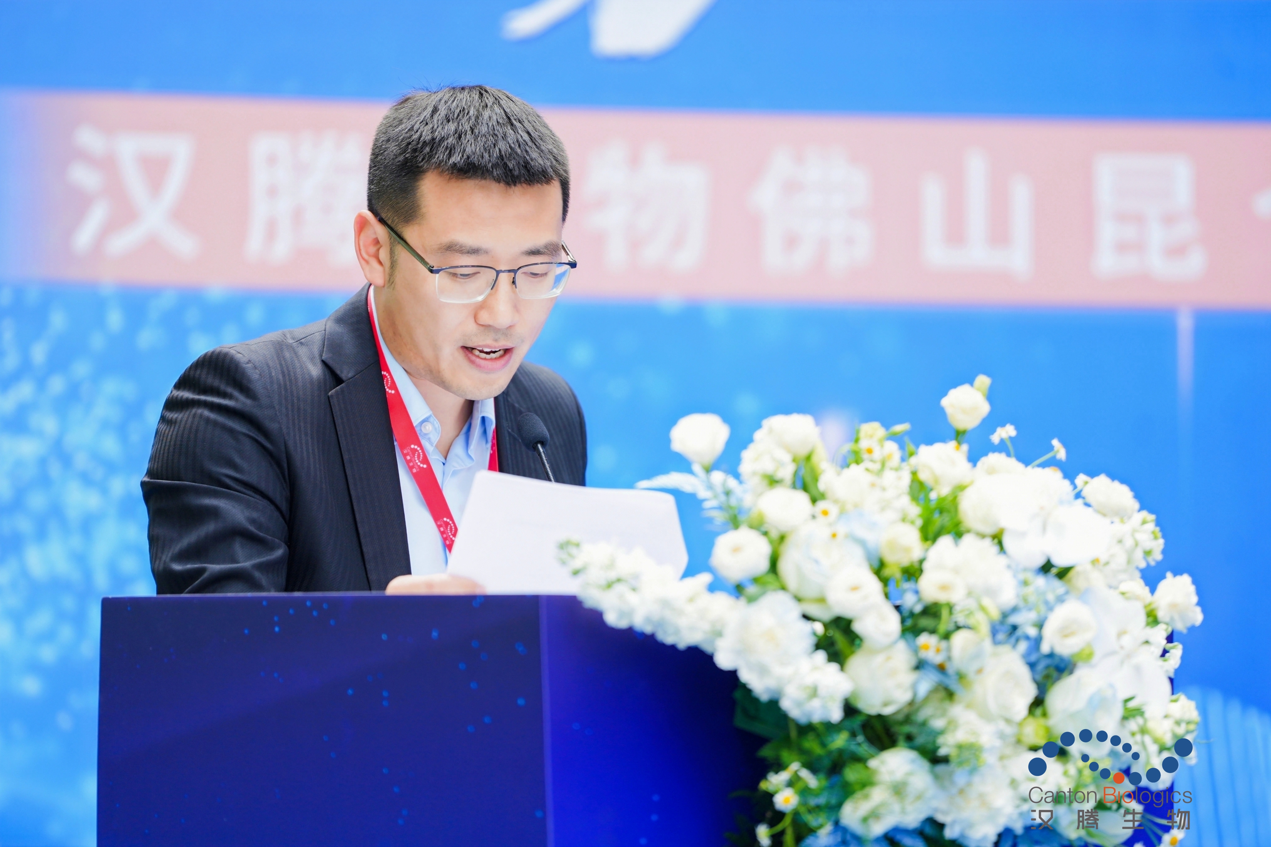 会议伊始,汉腾生物创始人CEO沈潇博士上台致辞,他提出,汉腾生物自2016年成立以来,便以“生物技术赋能未来”为使命,为全球生物药及生物技术公司提供一站式服务。经过多年的发展,汉腾生物已发展成粤港澳大湾区生物技术领域的佼佼者,在广州、佛山、上海以及德国柏林等地建立了研发、生产运营和临床供应基地,以国际化运营的姿态,为全球合作伙伴提供专业、高效的服务方案。